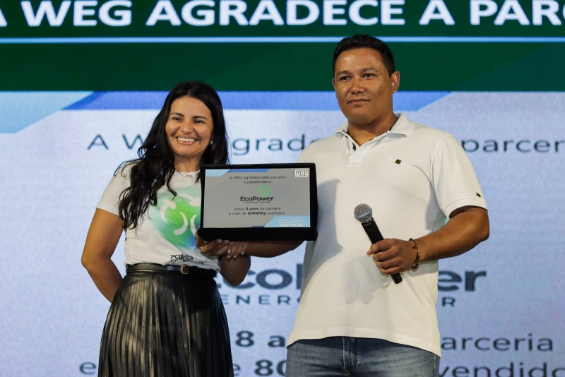 EcoPower como seu maior parceiro comercial no seguimento da energia solar e conferiu ao Anderson e a Náchila, sócios proprietários, uma placa comemorativa.